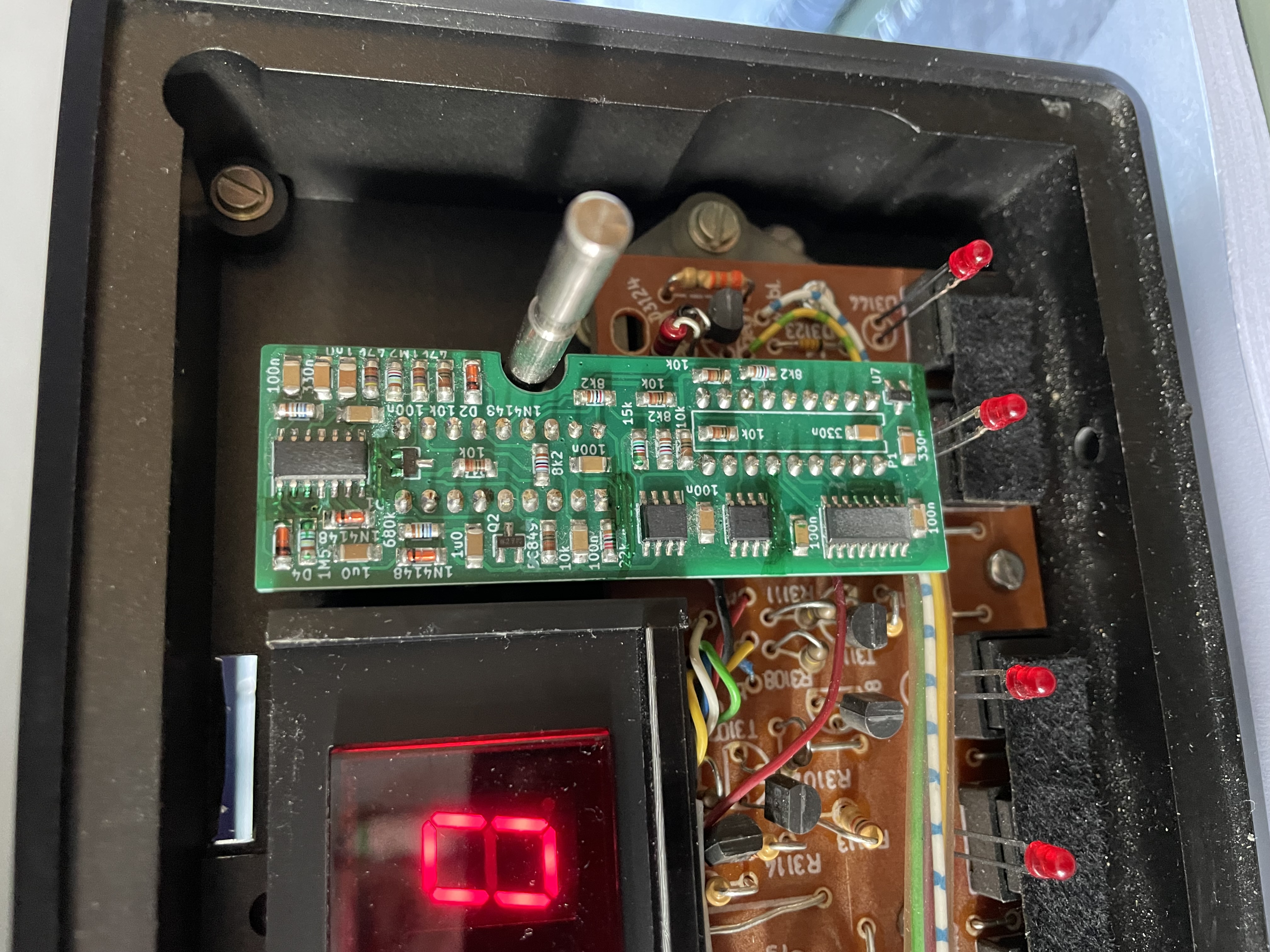 - Die Leiterplatte wird an Stelle des M190B1 in die IC-Fassung auf dem Tipp-Tasten-Modul gesteckt